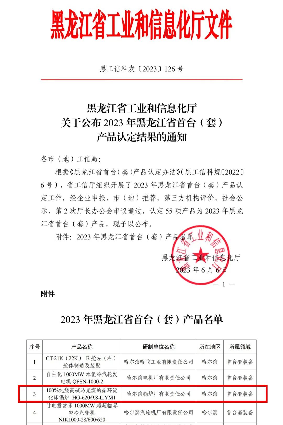 日前,黑龍江省工信廳公布了2023年黑龍江省首臺(套)產品評定結果,哈電鍋爐研發的“100%純燒高堿馬克煤的循環流化床鍋爐”項目成功獲評。