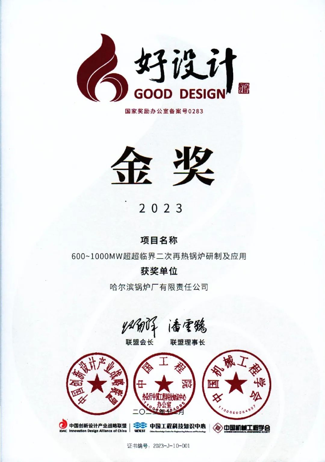 發(fā)布時間:2023-12-04日前,2023中國創(chuàng)新設(shè)計大會暨好設(shè)計頒獎大會公布了中國好設(shè)計金獎名單,哈電鍋爐研發(fā)的“600-1000MW超超臨界二次再熱鍋爐研制及應(yīng)用”項目成功登榜。